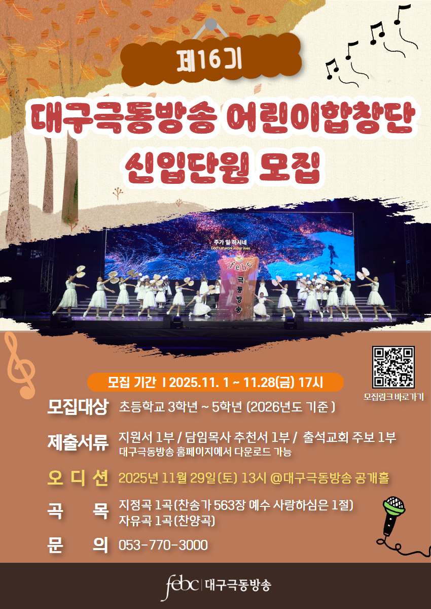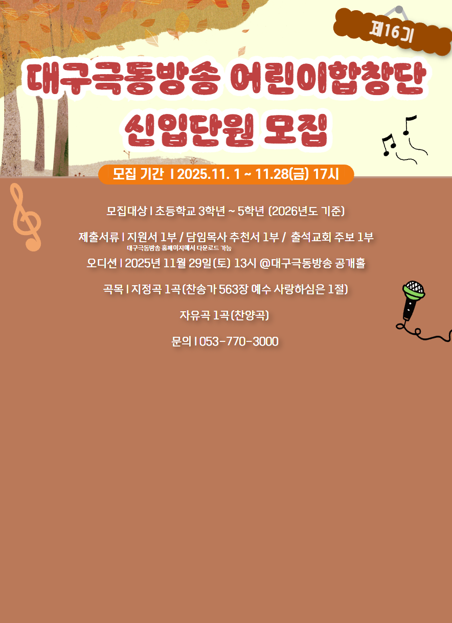 제16기 대구극동방송 어린이합창단 신입단원 모집