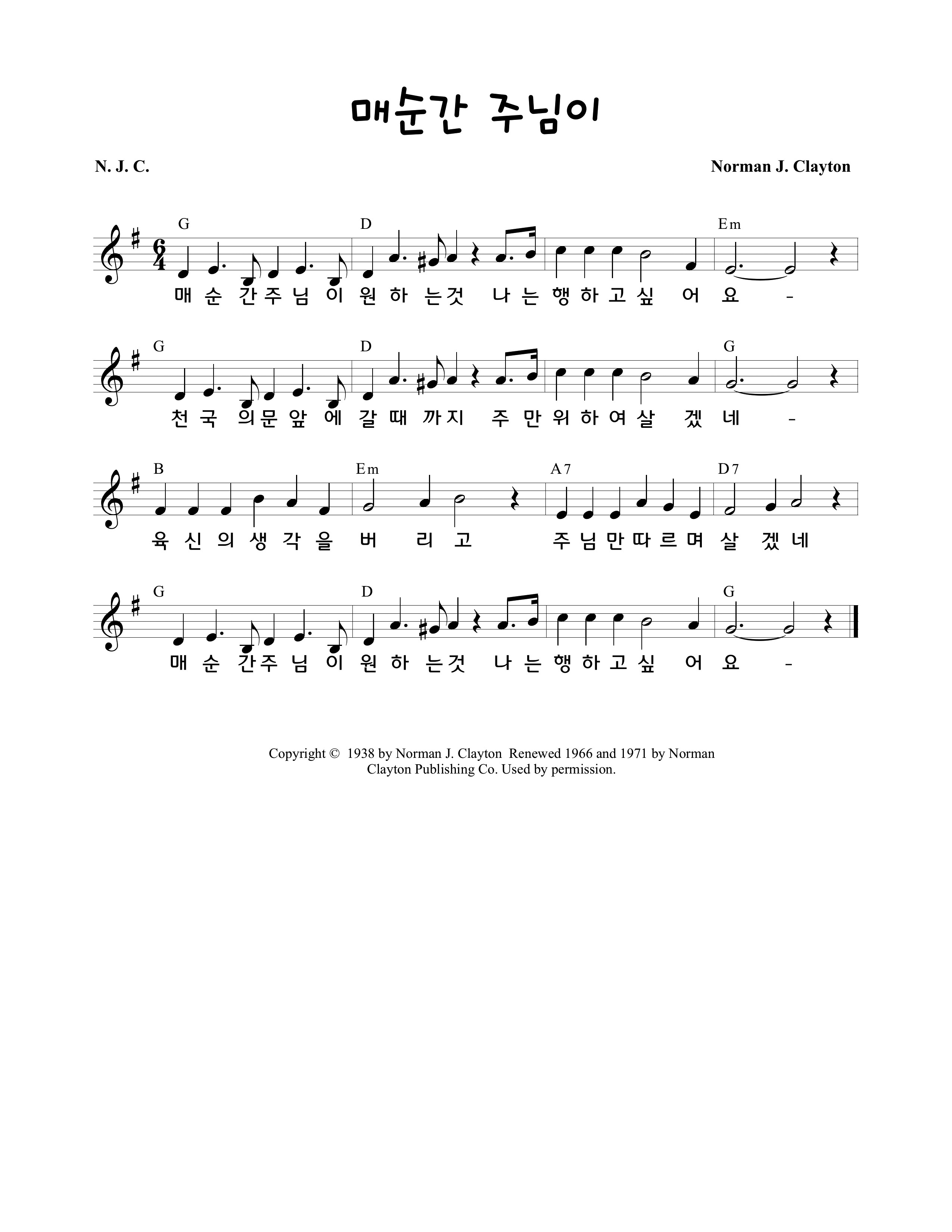 260131(토) '매 순간 주님이' 악보