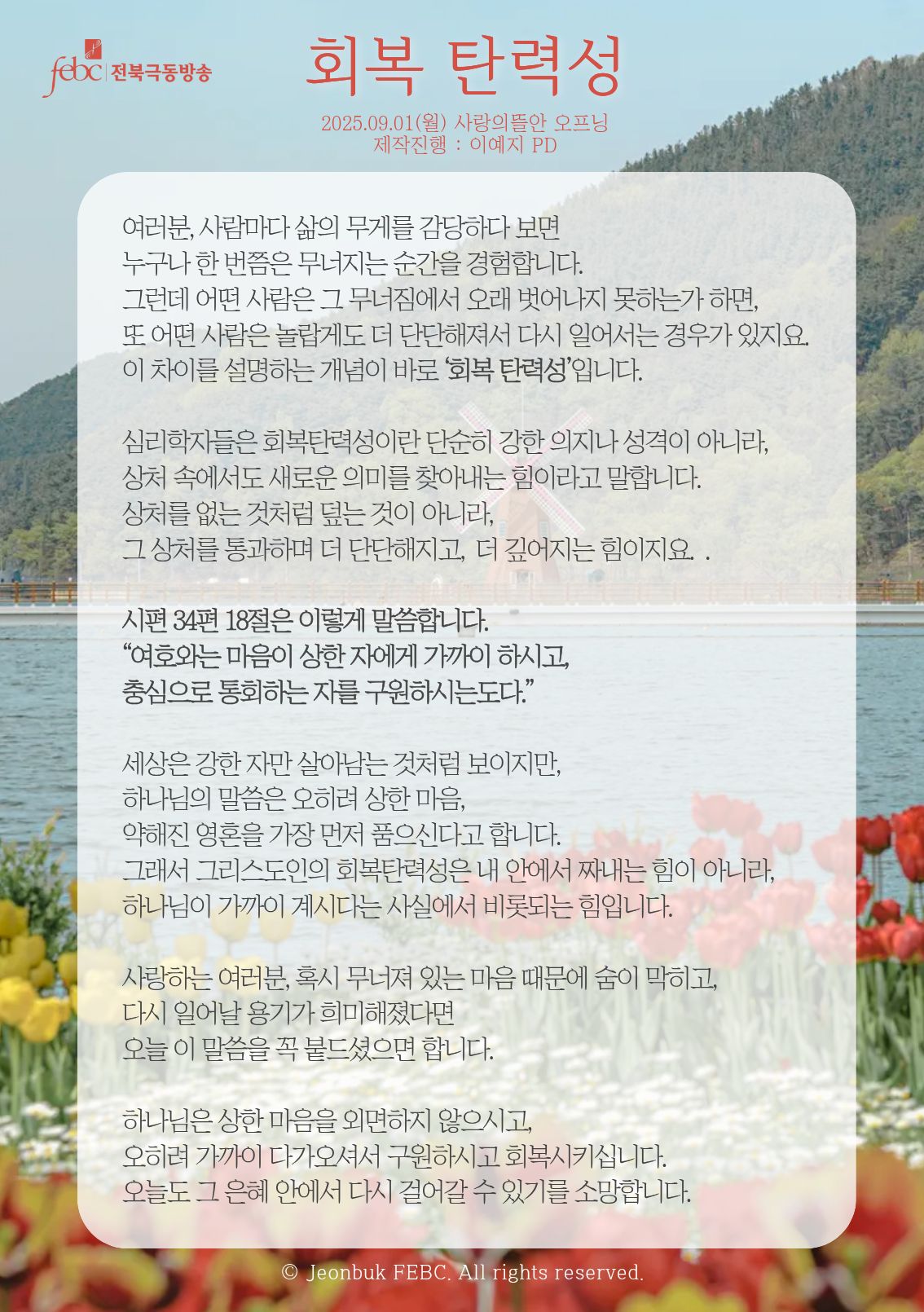 [전북] 25.09.01(월) 사랑의뜰안 오프닝 "회복 탄력성"
