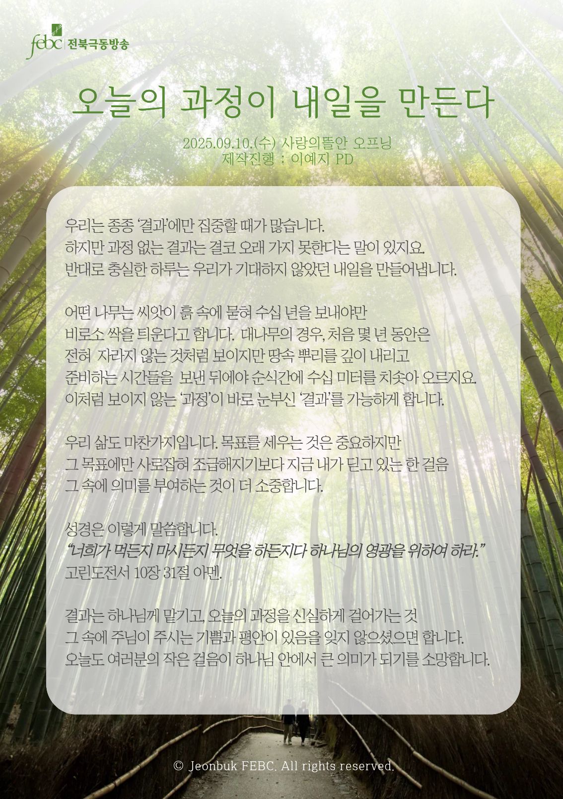 [전북] 25.09.10.(수) 사랑의뜰안 오프닝 "오늘의 과정이 내일을 만든다"