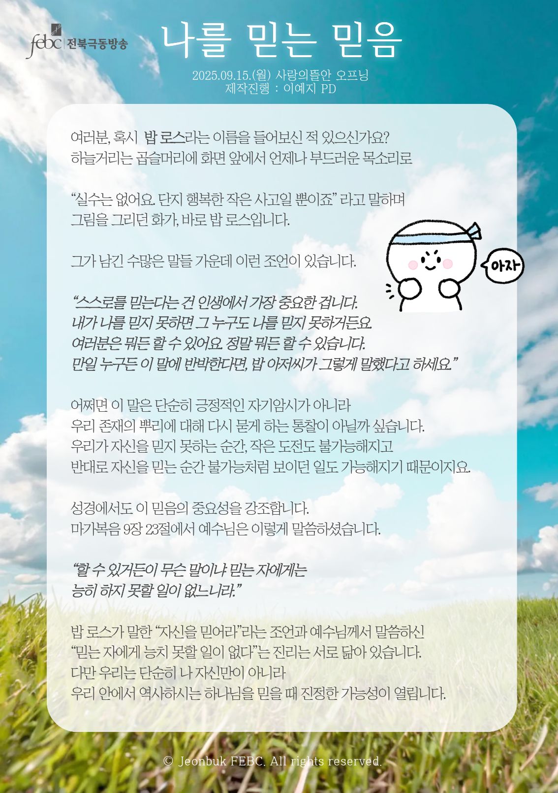 [전북] 25.09.15.(월) 사랑의뜰안 오프닝 "나를 믿는 믿음"