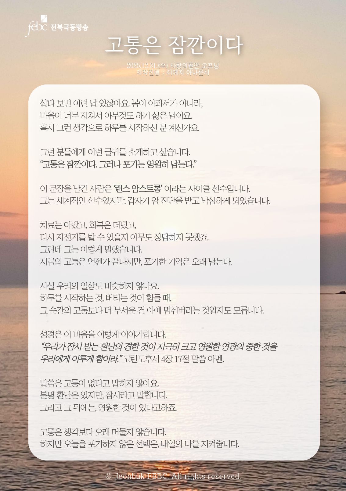 [전북] 25.12.31.(수) 사랑의뜰안 오프닝 "고통은 잠깐이다"