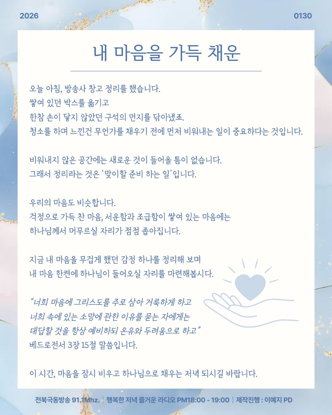 2026년 1월 30일 오프닝 [ 내 마음을 가득 채운 ]