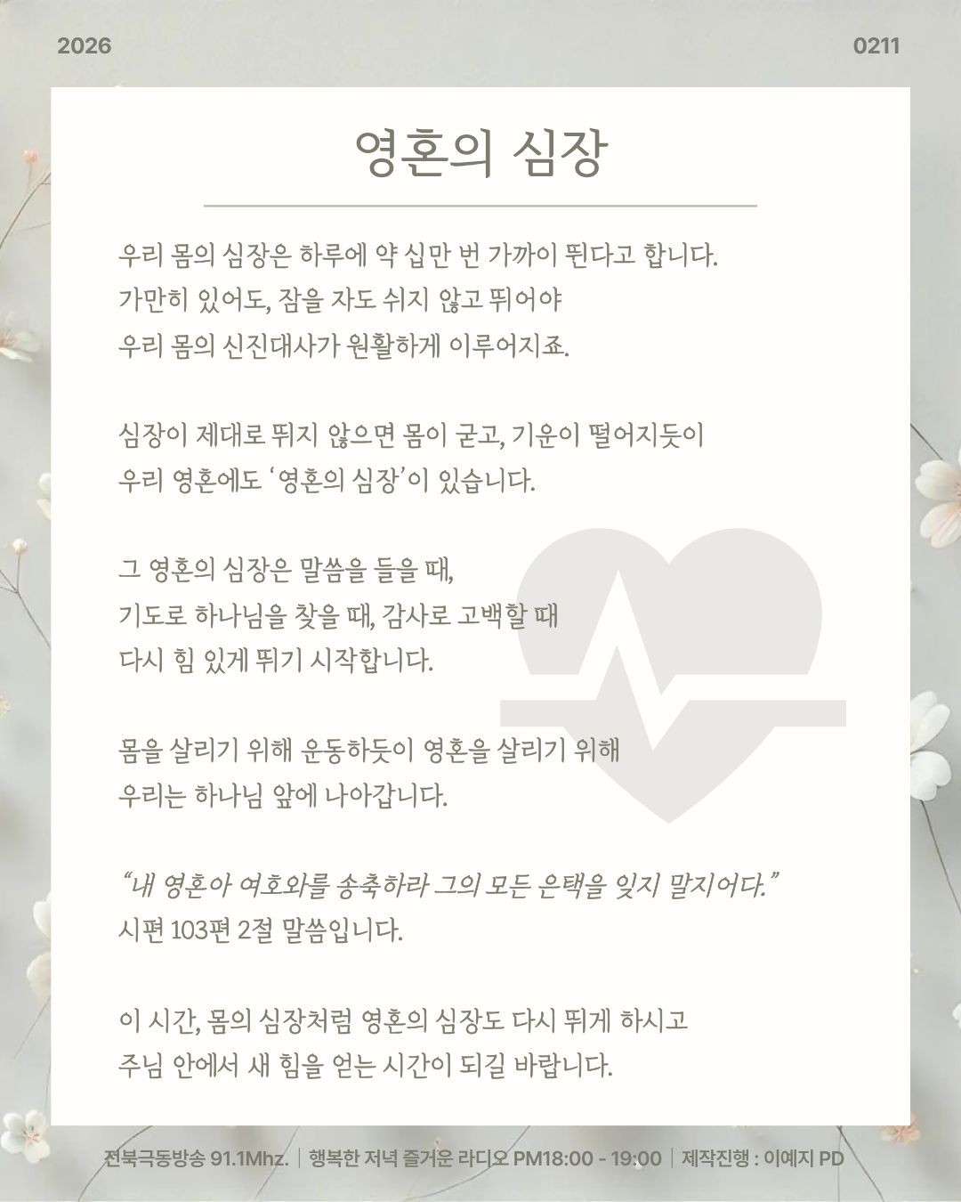 전북극동방송 행저즐라 2026년 2월 11일 오프닝 [ 영혼의 심장 ]